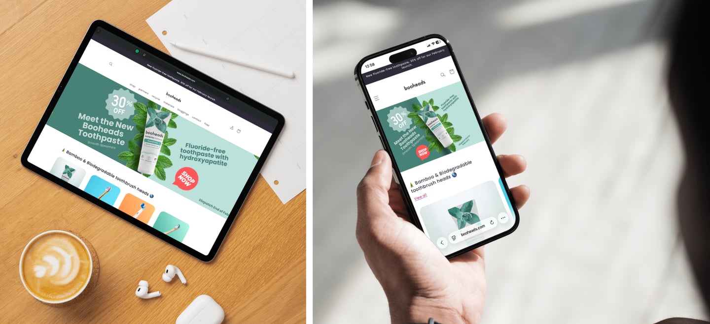 For Booheads’ toothpaste launch, Ecommerce Assist worked alongside the founder to plan and deliver the full rollout. Using Trello to structure the timeline, we aligned messaging, designed Shopify banners, created launch graphics, and built the email campaign so everything launched together professionally and on time.
